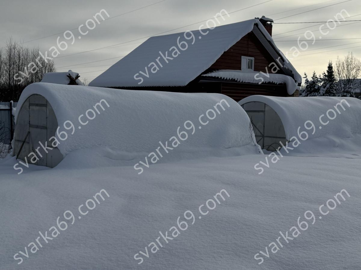 Напоминаем о необходимости очистки теплиц от снега! Такая снежная шапка, как на фото, может повредить поликарбонат.